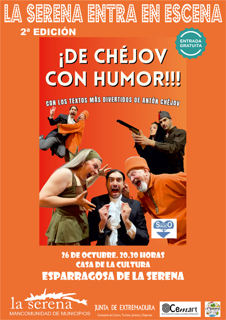 Y el domingo 26 de octubre, a las 20.30 y en la Casa de la Cultura de Esparragosa de la Serena, el grupo SAUCO representará ¡De Chéjov con Humor!!!