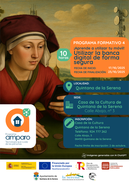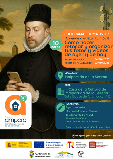 A partir del 14 de octubre, en la Mancomunidad de Municipios de la Serena, con la imprescindible colaboración de la Asociación EDinamiza, comenzamos nuestro programa AMPARO, financiado por la Federación Española de Universidades Populares, el Ministerio para la Transición Ecológica y el Reto Demográfico, la Unión Europea (NexGeneration EU) y el Plan de Recuperación, Tranformación y Resiliencia.