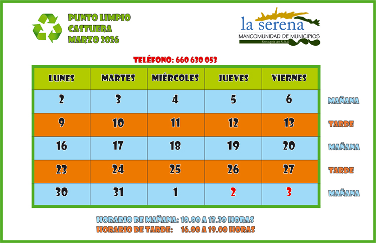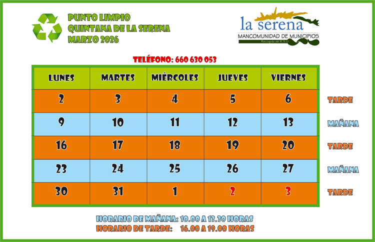 PUNTOS LIMPIOS MANCOMUNIDAD DE LA SERENA. HORARIOS MARZO